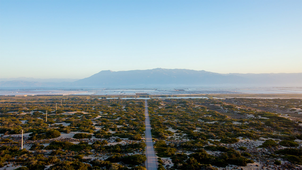 se encuentra rodeado de invernaderos.