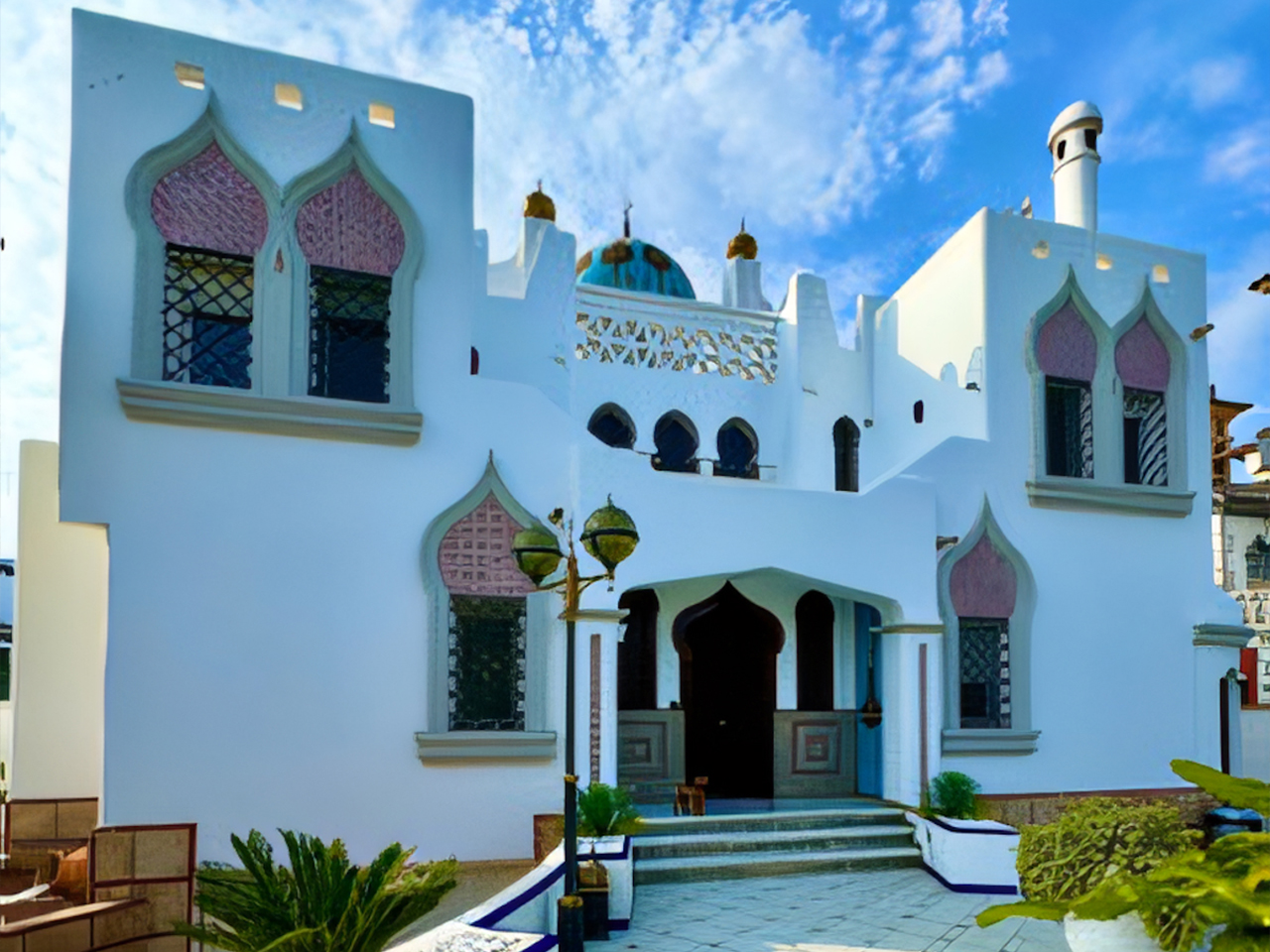 La Villa Árabe es un oasis de lujo inspirado en las Mil y Una Noches, situada junto al Paraje Natural de Punta Entinas-Sabinar y a tan solo 10 minutos de la playa. Su imponente cúpula azul es el centro visual de la villa, evocando la grandeza y la magia de los antiguos palacios árabes. Los interiores son igualmente impactantes, decorados con frescos originales del renombrado artista Waldi Wrobel, celosías iluminadas, y fuentes árabes interiores que añaden serenidad y elegancia a los espacios. Los suelos de mármol, arcos de madera tallada, azulejos andalusí y nazari, y carpintería de pino tea crean una atmósfera de lujo y exotismo. El dormitorio principal, con una cama de dosel y baño en suite, se abre a una gran terraza con vistas al jardín.